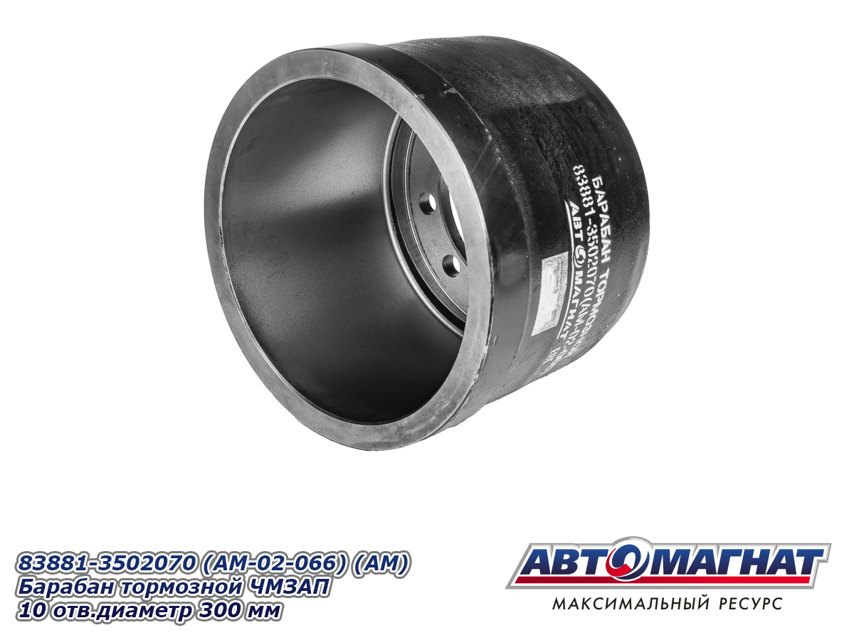 Барабан тормозной ЧМЗАП 10 отверстий, диаметр 300 мм, устанавливается на ЧМЗАП 99064, ЧМЗАП 93853, ЧМЗАП 99065 (юмба), ЧМЗАП 93262 на шине 8.25R15, 235/75R17.5) 83881-3502070 (AM-02-066) АВТОМАГНАТ