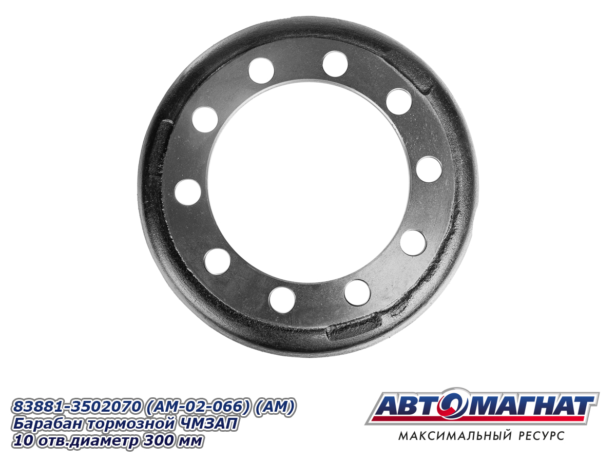 83881-3502070 (AM-02-066) (АМ) Барабан тормозной ЧМЗАП 10 отв.диаметр 300 мм