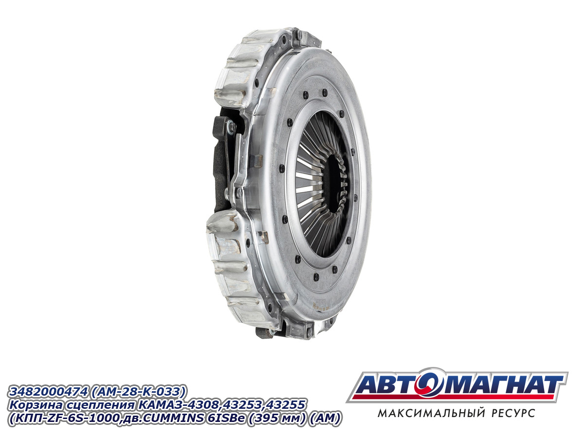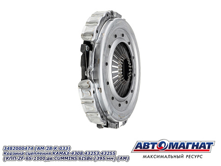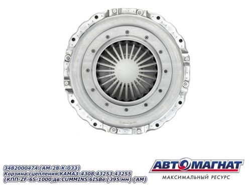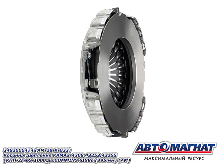 Корзина сцепления КАМАЗ-4308,43253,43255 (КПП-ZF-6S-1000,дв.CUMMINS 6ISBe 210 MF395) (аналог: 3482000463, аналог SACHS) 3482000474 (395 мм) АВТОМАГНАТ