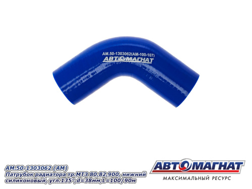 AM.50-1303062 (АМ) Патрубок радиатора тр.МТЗ 80,82,900,нижний силиконовый, угл.135°,d=38мм,L=100/90м 140.32 ₽