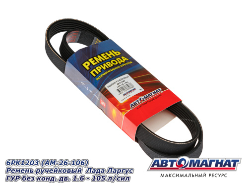 6PK1203 (АМ) Ремень ручейковый Лада Ларгус ГУР без конд. дв. 1.6 - 105 л/сил (10) 245.99 ₽