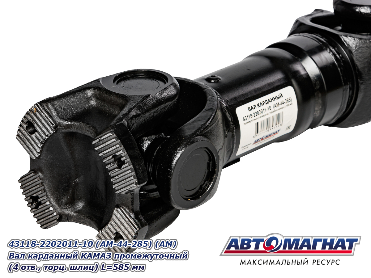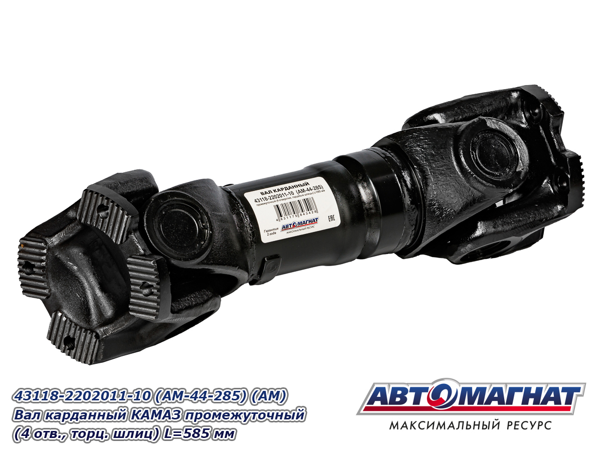 43118-2202011-10 (AM-44-285) (АМ) Вал карданный КАМАЗ промежуточный (4 отв., торц. шлиц) L=585 мм