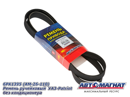 6PK1395 (АМ) Ремень ручейковый УАЗ-Patriot без кондиционера (10) 275.52 ₽