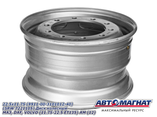 22.5x11.75 (9911-00-3101012-40) (SRW 7221105) Диск колесный МАЗ,DAF,VOLVO (11.75-22.5 ET135) АМ (12) 13 601.71 ₽
