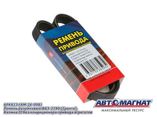6PK823 (АМ) Ремень ручейковый ВАЗ-2190 (Гранта), Калина II без кондиционера привода агрегатов (10) 173.73 ₽