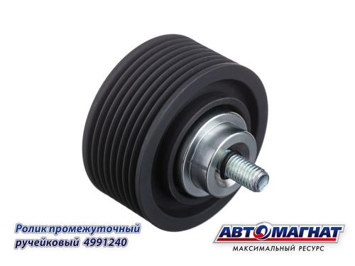 Ролик ГАЗ, КАМАЗ, ПАЗ дв.CUMMINS ISF 3.8, ISBe, ISDe промежуточный ручейковый (аналог: 5256103, 3978019, 3935015) (10304) 4991240 АВТОМАГНАТ