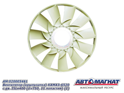 AM.020005461 Вентилятор (крыльчатка) КАМАЗ-6520 с дв. ISLe400 (d=750, 11 лопастей) (1) 5 790.76 ₽