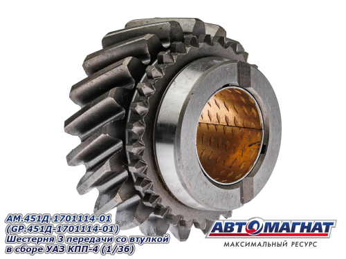 AM.451Д-1701114-01 (GP.451Д-1701114-01) Шестерня 3 передачи со втулкой в сборе УАЗ КПП-4 (1/36) 1 303.76 ₽