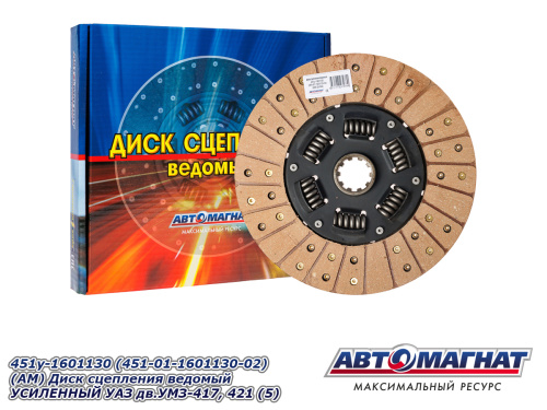 451у-1601130 (451-01-1601130-02) (АМ) Диск сцепления ведомый УСИЛЕННЫЙ УАЗ дв.УМЗ-417, 421 (5) 1 133.68 ₽