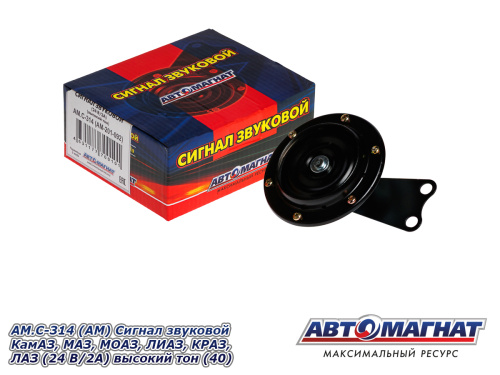 AM.С-314 (АМ) Сигнал звуковой КамАЗ, МАЗ, МОАЗ, ЛИАЗ, КРАЗ, ЛАЗ (24 В/2А) высокий тон (40) 325.05 ₽