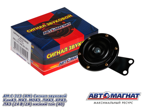 AM.С-313 (АМ) Сигнал звуковой КамАЗ, МАЗ, МОАЗ, ЛИАЗ, КРАЗ, ЛАЗ (24 В/2А) низкий тон (40) 325.05 ₽