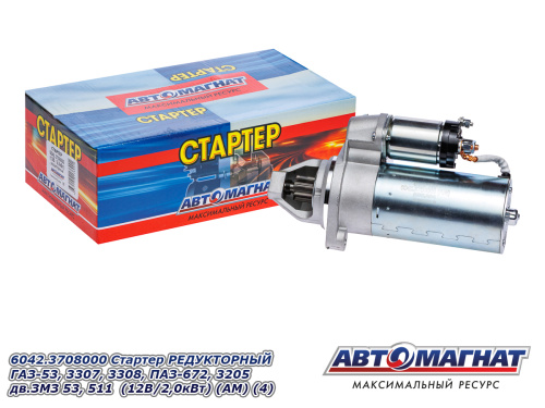 6042.3708000 Стартер РЕДУКТОРНЫЙ ГАЗ-53,3307,3308,ПАЗ-672,3205 дв.ЗМЗ 53, 511 (12В/2,0кВт) (АМ) (4) 6 359.81 ₽