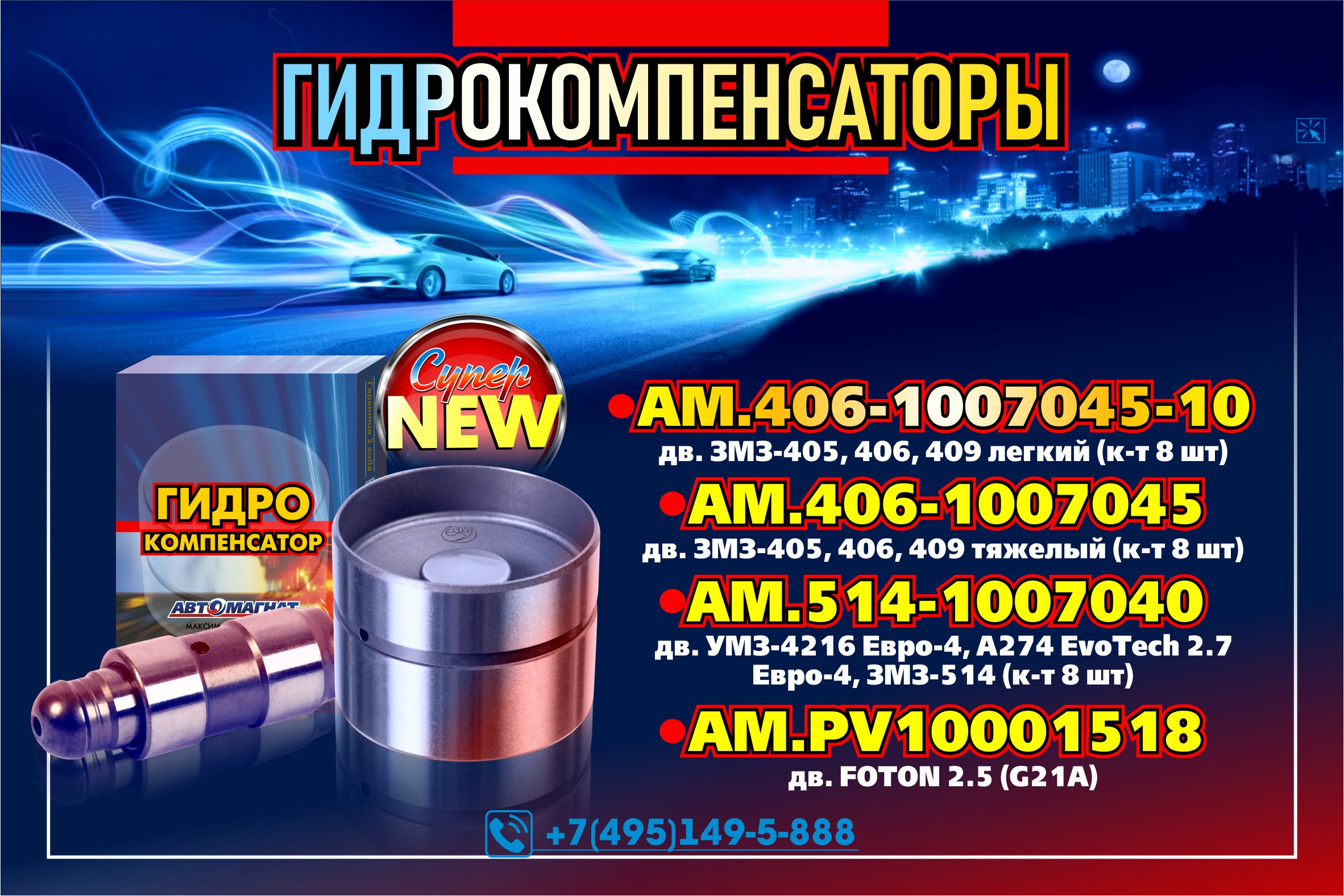 AM.406-1007045-10 - Гидрокомпенсатор дв. ЗМЗ-405, 406, 409 легкий (к-т 8 шт)