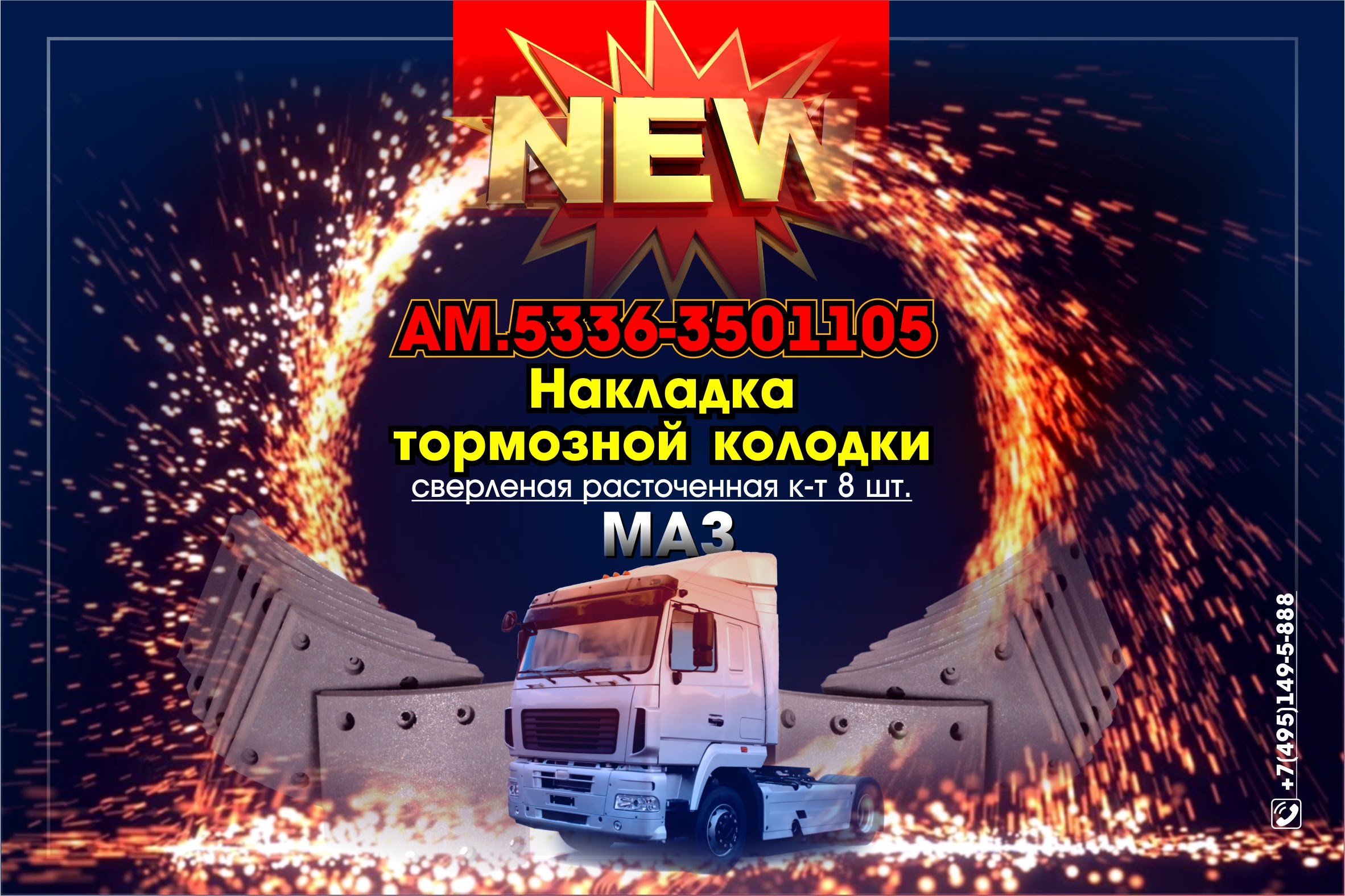 AM.5336-3501105 - Накладка тормозной колодки МАЗ сверленая расточенная к-т 8 шт.