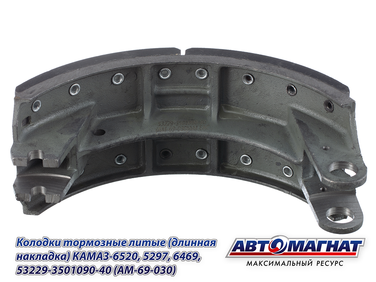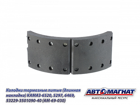 53229-3501090-40 (AM-69-030) (АМ) Колодки тормозные литые (длинная накладка) КАМАЗ-5297, 6469,