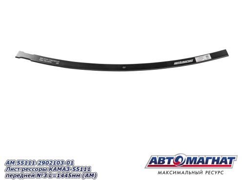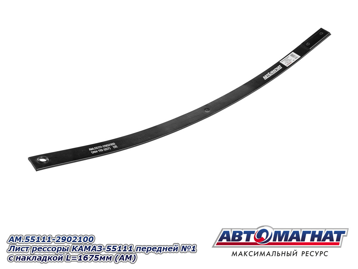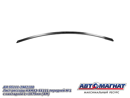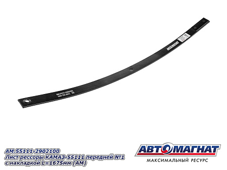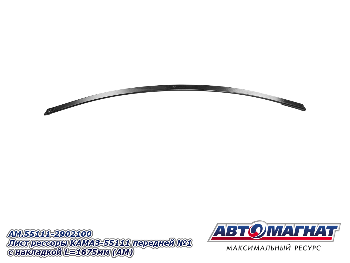 Лист рессоры КАМАЗ-55111 передней №1 с накладкой L=1675мм AM.55111-2902100 (AM-119-207) АВТОМАГНАТ